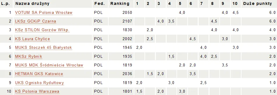 Kojarzenia 4. rundy: KS Polonia Warszawa – LKSz GCKiP Czarna, MKSz Rybnik – KSz Stilon Gorzów Wlkp., UKS Ognisko Rydułtowy – HETMAN GKS Katowice, MUKS Stoczek 45 Białystok – KS Laura Chylice, VOTUM SA Polonia Wrocław – MUKS MDK Śródmieście Wrocław