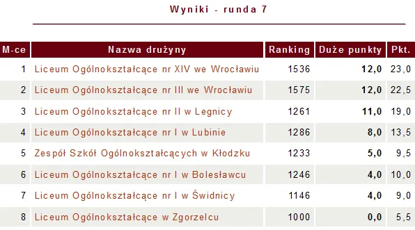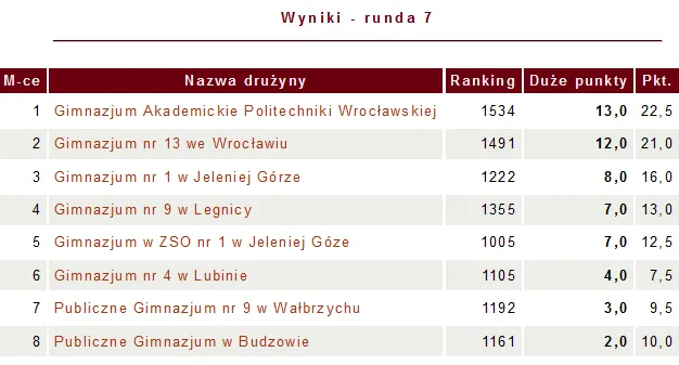 W Gimnazjum nr 13 we Wrocławiu rozegrano ostatni etap rozgrywek szkolnych w województwie dolnośląskim. Do Mistrzostw Polski Szkół awansowały po 3 najlepsze Szkoły Podstawowe, Gimnazja oraz Licea Ogólnokształcące.